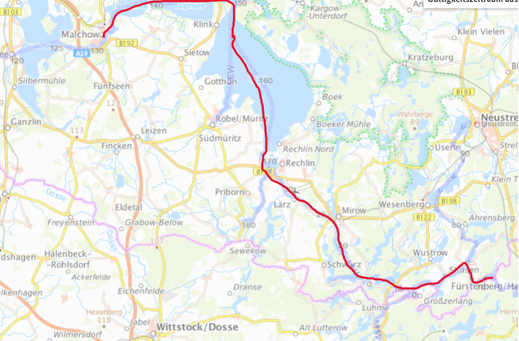- Fahrtroute: Malchow - Waren - Mirow - Diemitz - Canow - Strasen - Steinhavel - Fürstenberg.
