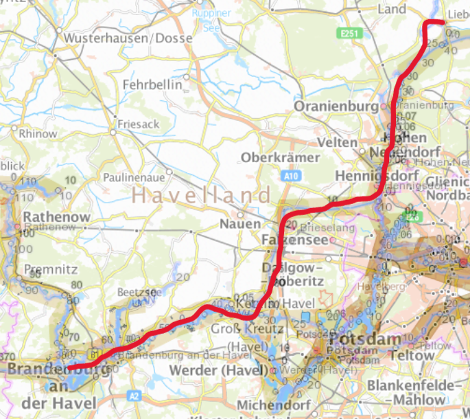 - Fahrtroute: Liebenwalde-Lehnitz-Schönwalde-Brandenburg