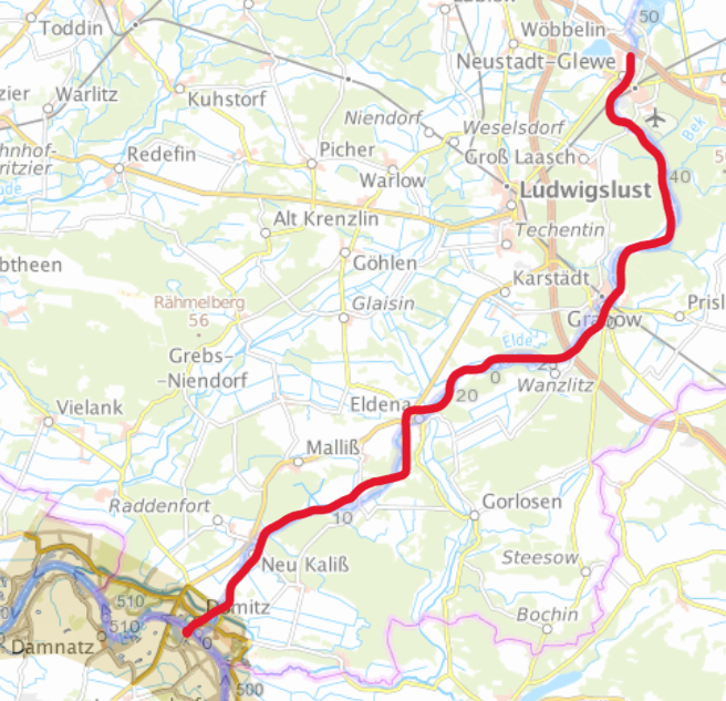 - Fahrtroute: Dömitz-Neu Kaliß-Findenwirunswieder-Malliß-Eldena-Grabow-Hechtsfort-Neustadt/Glewe